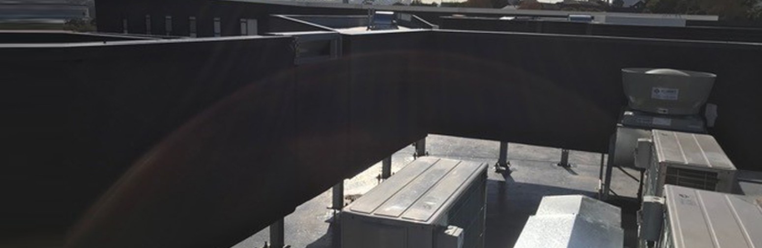 To finish, the sheets were joined using black glass cloth tape, no visible seams. The end result is a seamless black rooftop wall with superior noise inhibiting properties to protect the community and residents from rumbling and humming noise from the HVAC systems.